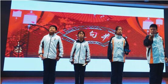 紧接着,初一(6)班的4位同学带来了精彩的“三句半”《数趣》。朗朗上口的台词配上同学们诙谐幽默的表达方式,吸引了评委们的目光。一句“符号不同数字同,这俩互为相反数,相加一定是个零,莫混淆!”将数学知识别具匠心地以“三句半”的形式巧妙呈现,同学们在欢笑中能“学有所得”。