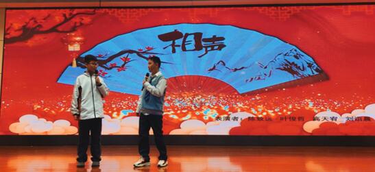 首先,初一(5)班同学带来的相声节目《一个简单又复杂的数学问题》引得全场笑声迭起。两位同学以诙谐生动、配合默契的相声表演展示了数学问题的趣味之处,赢得阵阵掌声。