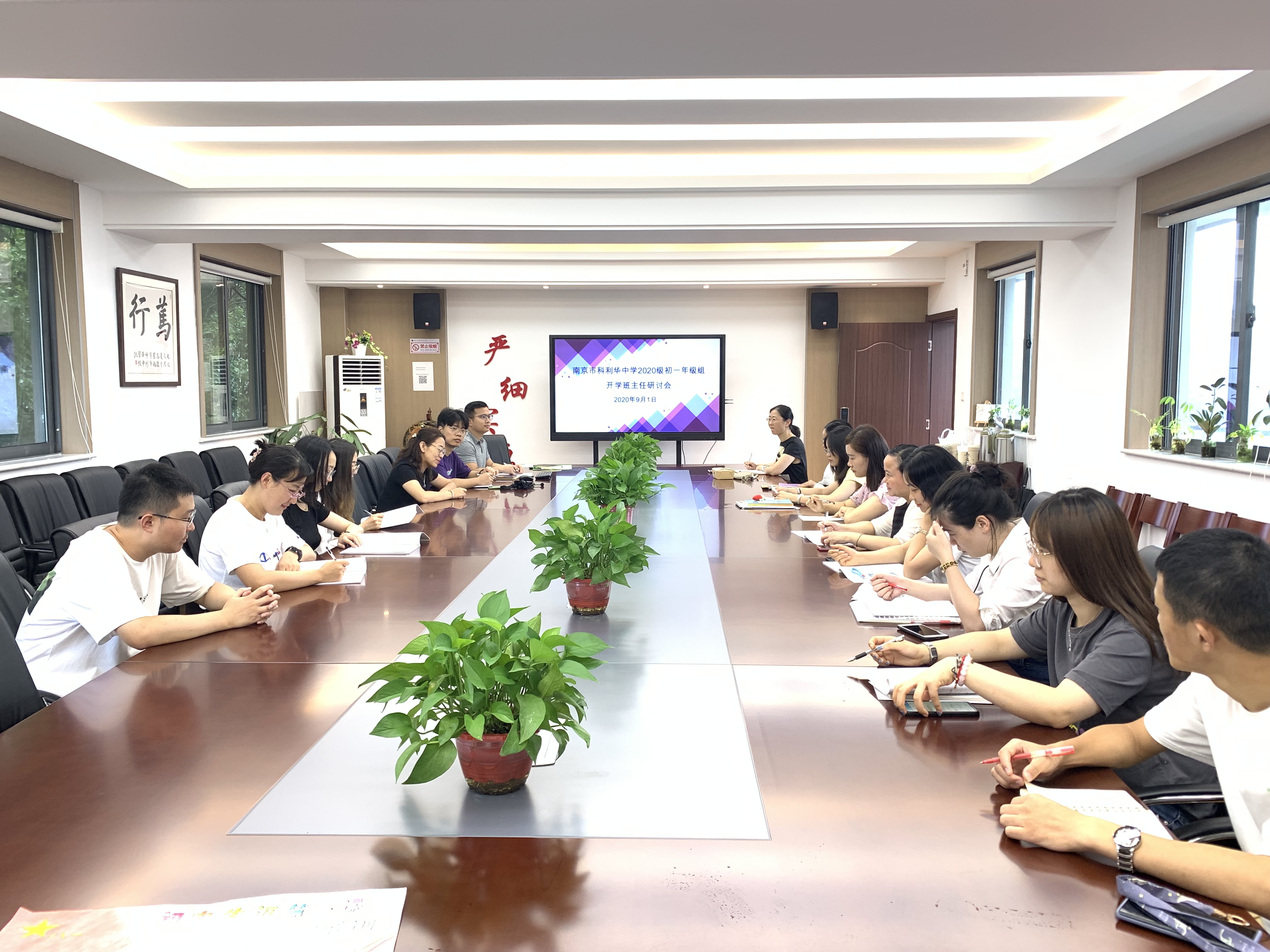 2020年9月1日中午,新学期上课的第一天,我校初一年级组所有班主任老师在笃行楼四楼会议室召开了新学期第一次班主任工作研讨会。